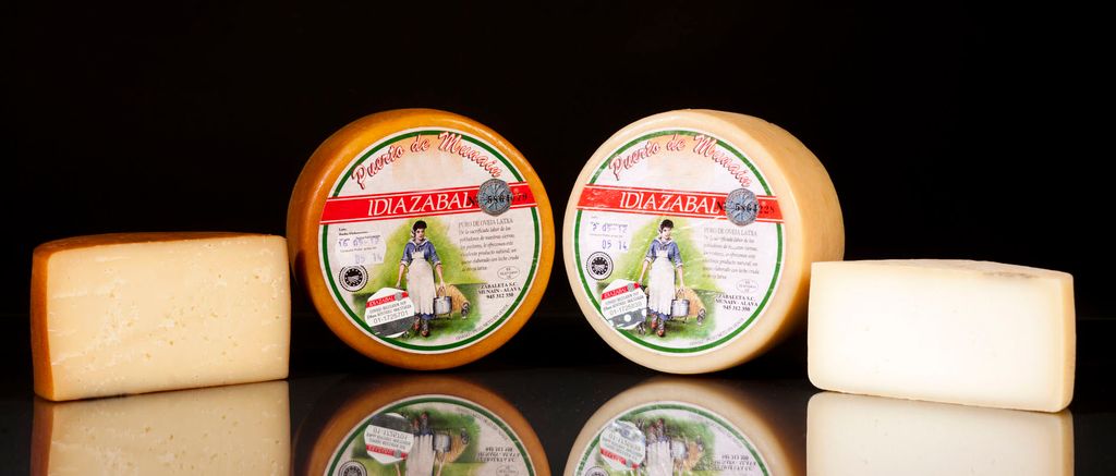 Quesos Idiazabal de diferentes curaciones, texturas y sabores, en formatos variados.